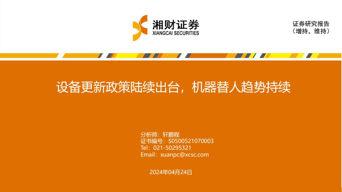 【8407B】机械行业:设备更新政策陆续出台,机器替人趋势持续240424湘财证券13页 2024-05-09 5月 107 预览结束,一共13页,请下载后查看 资源下载下载价格59 H币VIP免费升级VIP立即购买下载或充值问题请将订单号发送到:2907878669@qq.com ,我们会在24小时内为您处理 工业机械