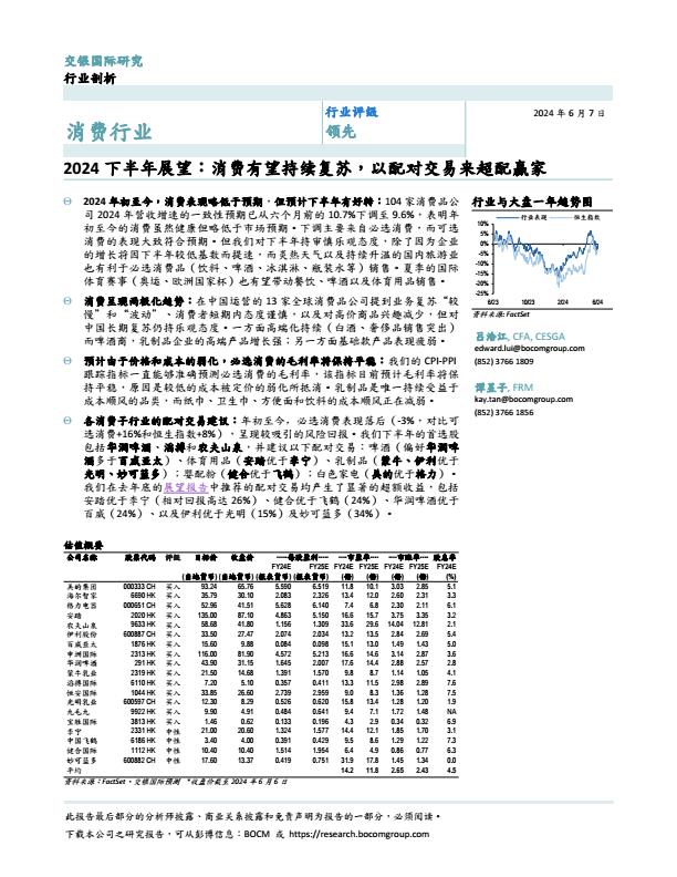 【1217C】消费行业2024下半年展望:消费有望持续复苏,以配对交易来超配赢家240607交银国际23页 2024-07-02 6月 96 预览结束,一共23页,请下载后查看 资源下载下载价格59 H币VIP免费升级VIP立即购买下载或充值问题请将订单号发送到:2907878669@qq.com ,我们会在24小时内为您处理 消费零售