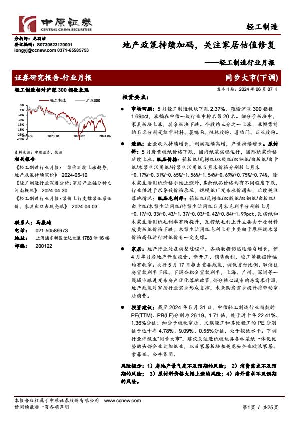 【1458C】轻工制造行业月报:地产政策持续加码,关注家居估值修复240607中原证券25页 2024-07-02 6月 112 预览结束,一共25页,请下载后查看 资源下载下载价格59 H币VIP免费升级VIP立即购买下载或充值问题请将订单号发送到:2907878669@qq.com ,我们会在24小时内为您处理 地产开发
