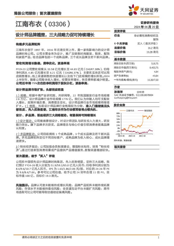 【2403C】江南布衣(03306.HK)设计师品牌翘楚,三大战略力促可持续增长240620天风证券16页 2024-07-03 7月 99 预览结束,一共16页,请下载后查看 资源下载下载价格59 H币VIP免费升级VIP立即购买下载或充值问题请将订单号发送到:2907878669@qq.com ,我们会在24小时内为您处理 金融分析