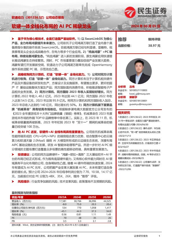 【2579C】软通动力301236.SZ公司动态报告:软硬一体全栈化布局的AI PC稀缺龙头20240605民生证券17页 2024-07-03 7月 99 预览结束,一共17页,请下载后查看 资源下载下载价格59 H币VIP免费升级VIP立即购买下载或充值问题请将订单号发送到:2907878669@qq.com ,我们会在24小时内为您处理 科技电子