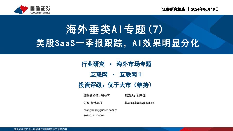 【2547C】互联网行业海外垂类AI专题(7):美股SaaS一季报跟踪,AI效果明显分化240619国信证券30页 2024-07-03 7月 88 预览结束,一共30页,请下载后查看 资源下载下载价格59 H币VIP免费升级VIP立即购买下载或充值问题请将订单号发送到:2907878669@qq.com ,我们会在24小时内为您处理 科技电子