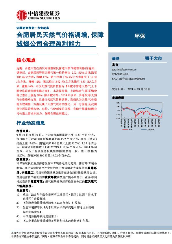 【7518C】环保行业:合肥居民天然气价格调增,保障城燃公司合理盈利能力240930中信建投12页 2024-10-30 10月 58 预览结束,本文件为PDF文档,一共12页,请购买后,下载查看 资源下载下载价格59 H币VIP免费升级VIP立即购买下载或充值问题请将订单号发送到:2907878669@qq.com ,我们会在24小时内为您处理 能源化工