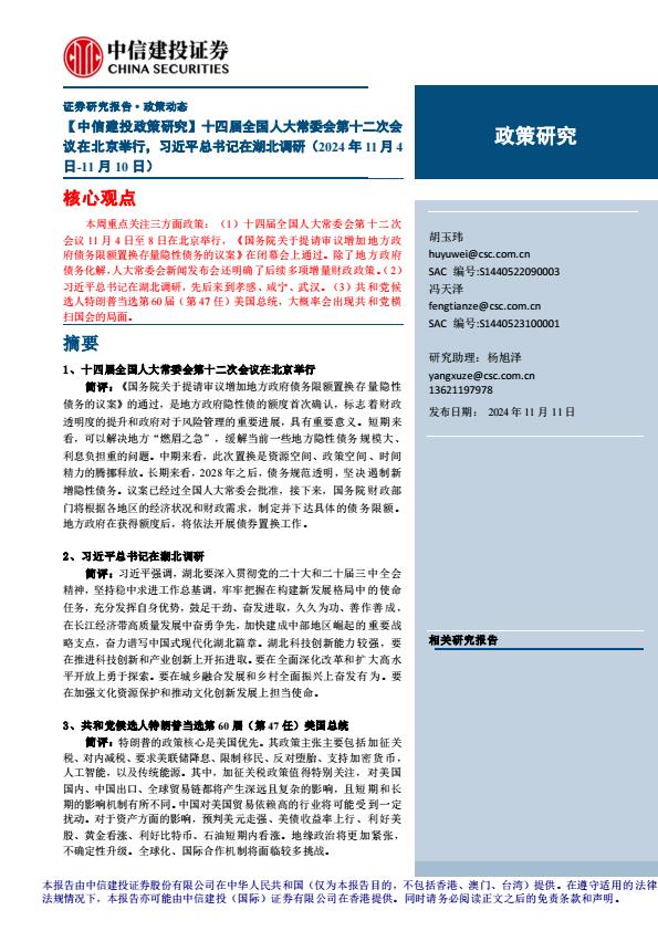 【3218D】【中信建投政策研究】十四届全国人大常委会第十二次会议在北京举行,习近平总书记在湖北调研(2024年11月4日11月10日)241111中信建投15页 2024-11-30 11月 26 预览结束,本文件为PDF文档,一共15页,请购买后,下载查看 资源下载下载价格59 H币VIP免费升级VIP立即购买下载或充值问题请将订单号发送到:2907878669@qq.com ,我们会在24小时内为您处理 金融分析