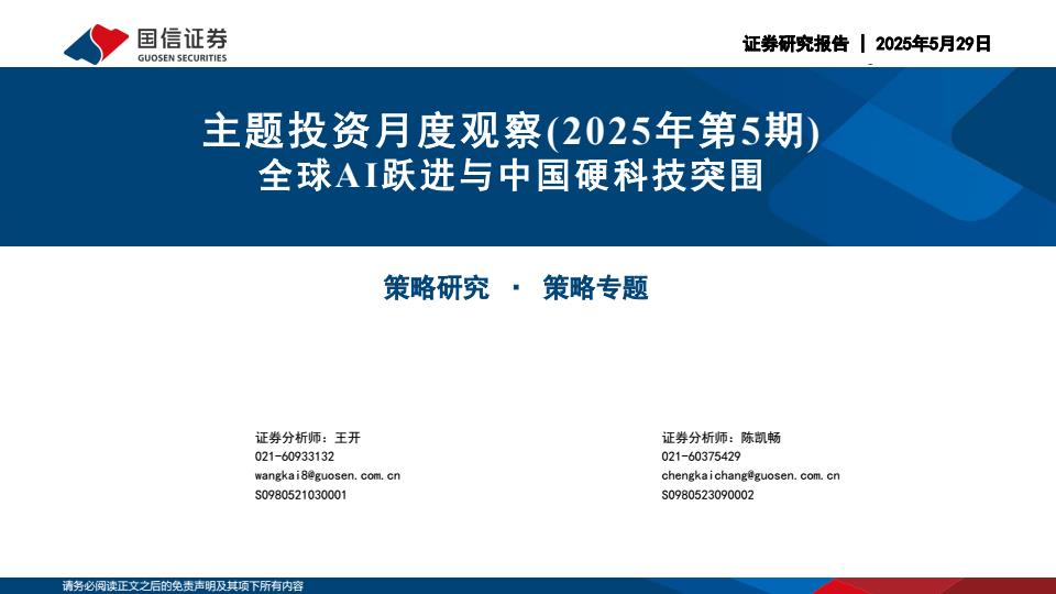【13157E】主题投资月度观察(2025年第5期):全球AI跃进与中国硬科技突围250529国信证券26页 2025-05-30 5月 20 预览结束,本文件为PDF文档,一共26页,请购买后,下载查看 资源下载下载价格59 H币VIP免费升级VIP立即购买下载或充值问题请将订单号发送到:2907878669@qq.com ,我们会在24小时内为您处理 科技电子