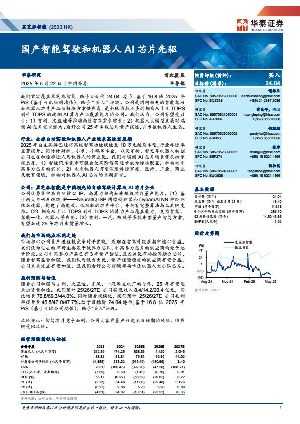 【14279E】黑芝麻智能(2533.HK)国产智能驾驶和机器人AI芯片先驱250522华泰证券35页 2025-05-30 5月 19 预览结束,本文件为PDF文档,一共35页,请购买后,下载查看 资源下载下载价格59 H币VIP免费升级VIP立即购买下载或充值问题请将订单号发送到:2907878669@qq.com ,我们会在24小时内为您处理 科技电子
