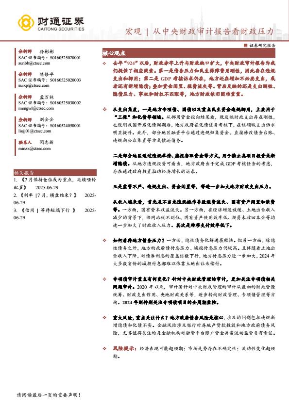【18879】【财通证券】宏观|从中央财政审计报告看财政压力 17小时前 7月 1 预览结束,本文件为PDF文档,一共14页,请购买后,下载查看 资源下载下载价格59 H币VIP免费升级VIP立即购买下载或充值问题请将订单号发送到:2907878669@qq.com ,我们会在24小时内为您处理 金融分析