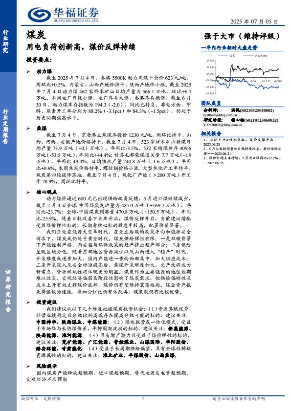 【18611】【华福证券】煤炭行业:用电负荷创新高,煤价反弹持续 17小时前 7月 1 预览结束,本文件为PDF文档,一共28页,请购买后,下载查看 资源下载下载价格59 H币VIP免费升级VIP立即购买下载或充值问题请将订单号发送到:2907878669@qq.com ,我们会在24小时内为您处理 能源化工
