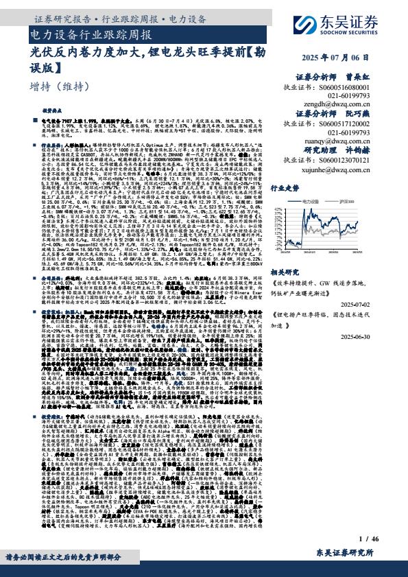 【18853】【东吴证券】电力设备行业跟踪周报:光伏反内卷力度加大,锂电龙头旺季提前 20小时前 7月 1 预览结束,本文件为PDF文档,一共46页,请购买后,下载查看 资源下载下载价格59 H币VIP免费升级VIP立即购买下载或充值问题请将订单号发送到:2907878669@qq.com ,我们会在24小时内为您处理 能源化工