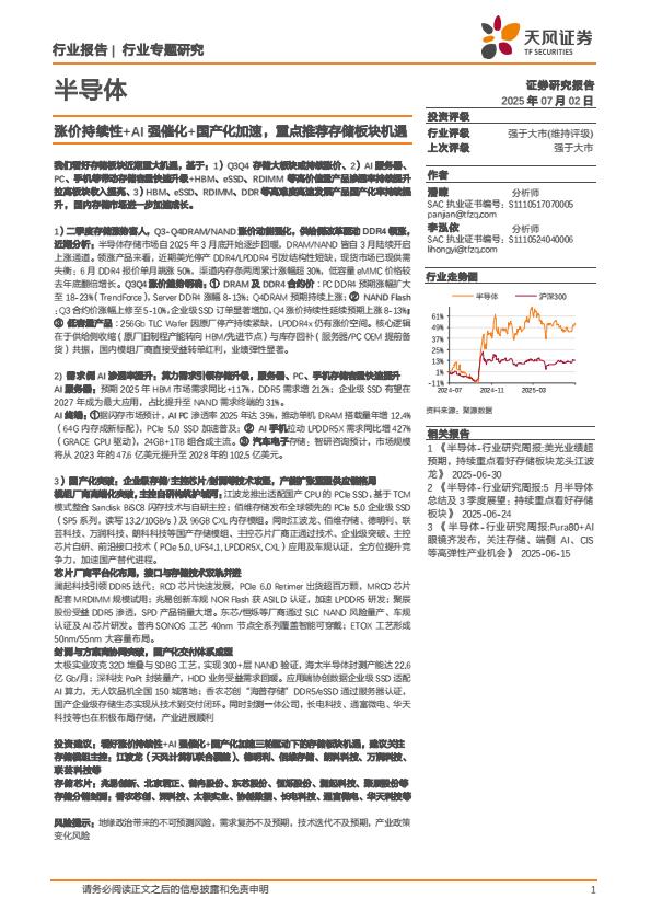 【18459】【天风证券】半导体行业专题研究:涨价持续性+AI强催化+国产化加速,重点推荐存储板块机遇 20小时前 7月 2 预览结束,本文件为PDF文档,一共42页,请购买后,下载查看 资源下载下载价格59 H币VIP免费升级VIP立即购买下载或充值问题请将订单号发送到:2907878669@qq.com ,我们会在24小时内为您处理 科技电子