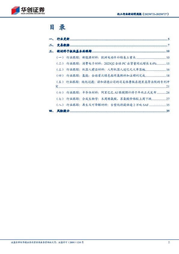 【18627】【华创证券】化工行业新材料周报( 20小时前 7月 2 预览结束,本文件为PDF文档,一共42页,请购买后,下载查看 资源下载下载价格59 H币VIP免费升级VIP立即购买下载或充值问题请将订单号发送到:2907878669@qq.com ,我们会在24小时内为您处理 能源化工
