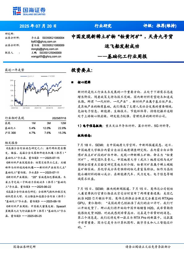 【18776】【国海证券】基础化工行业周报:中国发现新稀土矿物“钕黄河矿”,天舟九号货运飞船发射成功 1天前 7月 1 预览结束,本文件为PDF文档,一共30页,请购买后,下载查看 资源下载下载价格59 H币VIP免费升级VIP立即购买下载或充值问题请将订单号发送到:2907878669@qq.com ,我们会在24小时内为您处理 汽车物流
