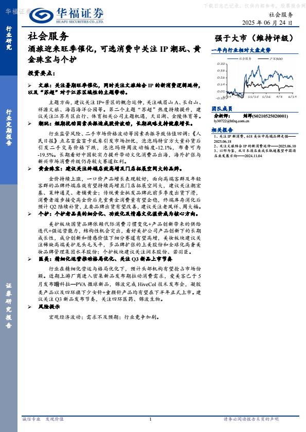 【18608】【华福证券】社会服务行业定期报告:酒旅迎来旺季催化,可选消费中关注IP潮玩、黄金珠宝与个护 1天前 7月 1 预览结束,本文件为PDF文档,一共17页,请购买后,下载查看 资源下载下载价格59 H币VIP免费升级VIP立即购买下载或充值问题请将订单号发送到:2907878669@qq.com ,我们会在24小时内为您处理 消费零售