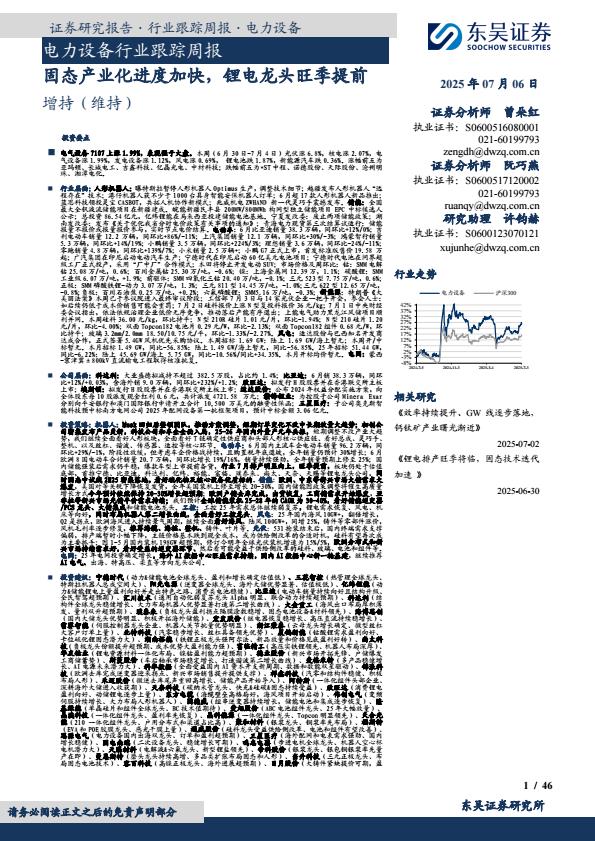 【18856】【东吴证券】电力设备行业跟踪周报:固态产业化进度加快,锂电龙头旺季提前 1天前 7月 1 预览结束,本文件为PDF文档,一共46页,请购买后,下载查看 资源下载下载价格59 H币VIP免费升级VIP立即购买下载或充值问题请将订单号发送到:2907878669@qq.com ,我们会在24小时内为您处理 能源化工