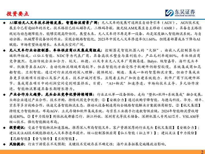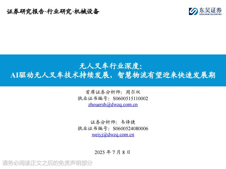 【18817】【东吴证券】无人叉车行业深度:AI驱动无人叉车技术持续发展,智慧物流有望迎来快速发展期 2天前 7月 1 预览结束,本文件为PDF文档,一共54页,请购买后,下载查看 资源下载下载价格59 H币VIP免费升级VIP立即购买下载或充值问题请将订单号发送到:2907878669@qq.com ,我们会在24小时内为您处理 汽车物流