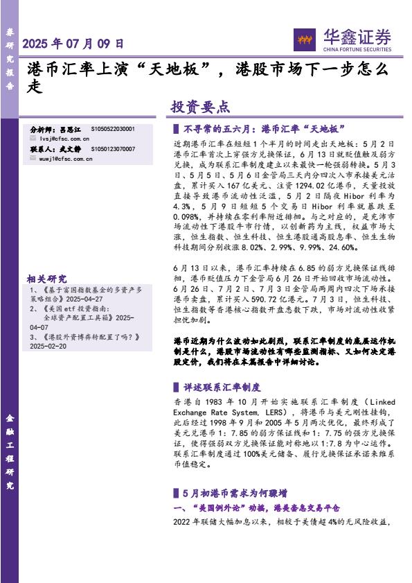 【18560】【华鑫证券】港币汇率上演“天地板”,港股市场下一步怎么走 1天前 7月 1 预览结束,本文件为PDF文档,一共16页,请购买后,下载查看 资源下载下载价格59 H币VIP免费升级VIP立即购买下载或充值问题请将订单号发送到:2907878669@qq.com ,我们会在24小时内为您处理 金融分析
