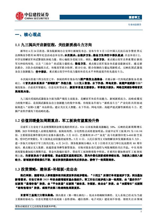 【18305】【中信建投】国防军工行业:九三阅兵开启新征程,关注新质战斗力方向 17小时前 7月 1 预览结束,本文件为PDF文档,一共24页,请购买后,下载查看 资源下载下载价格59 H币VIP免费升级VIP立即购买下载或充值问题请将订单号发送到:2907878669@qq.com ,我们会在24小时内为您处理 军工