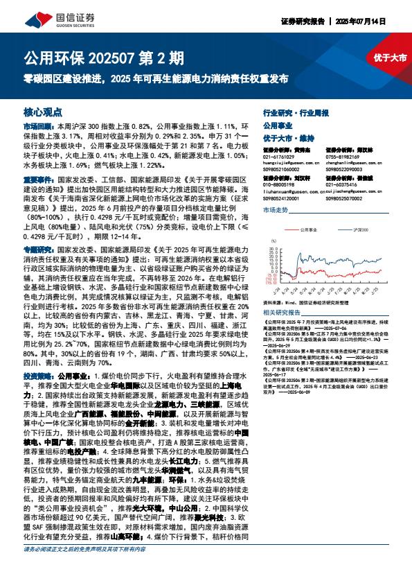 【18677】【国信证券】公用环保第2期:零碳园区建设推进,2025年可再生能源电力消纳责任权重发布 1天前 7月 1 预览结束,本文件为PDF文档,一共29页,请购买后,下载查看 资源下载下载价格59 H币VIP免费升级VIP立即购买下载或充值问题请将订单号发送到:2907878669@qq.com ,我们会在24小时内为您处理 能源化工