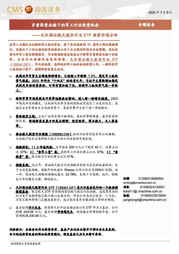 【18380】【招商证券】天弘国证航天航空行业ETF投资价值分析:多重因素共振下的军工行业投资机会 17小时前 7月 2 预览结束,本文件为PDF文档,一共20页,请购买后,下载查看 资源下载下载价格59 H币VIP免费升级VIP立即购买下载或充值问题请将订单号发送到:2907878669@qq.com ,我们会在24小时内为您处理 军工
