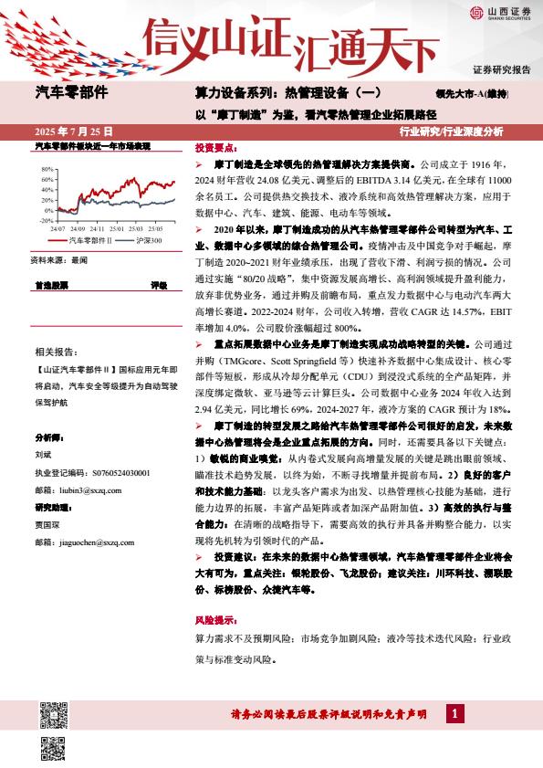 【18486】【山西证券】算力设备系列:热管理设备(一):以“摩丁制造”为鉴,看汽零热管理企业拓展路径 2天前 7月 2 预览结束,本文件为PDF文档,一共32页,请购买后,下载查看 资源下载下载价格59 H币VIP免费升级VIP立即购买下载或充值问题请将订单号发送到:2907878669@qq.com ,我们会在24小时内为您处理 科技电子
