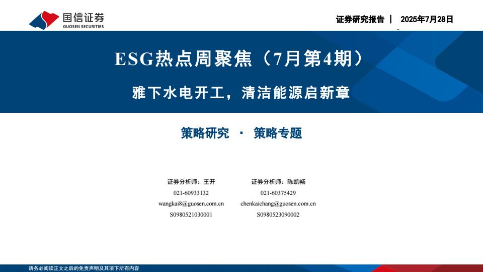 【18688】【国信证券】ESG热点周聚焦(7月第4期):雅下水电开工,清洁能源启新章 2天前 7月 2 预览结束,本文件为PDF文档,一共21页,请购买后,下载查看 资源下载下载价格59 H币VIP免费升级VIP立即购买下载或充值问题请将订单号发送到:2907878669@qq.com ,我们会在24小时内为您处理 能源化工