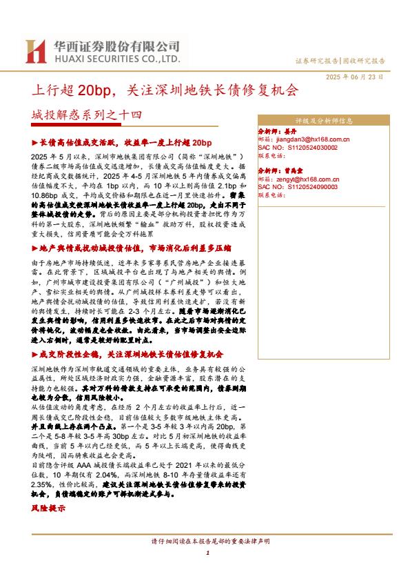 【18576】【华西证券】城投解惑系列之十四:上行超20bp,关注深圳地铁长债修复机会 1天前 7月 1 预览结束,本文件为PDF文档,一共17页,请购买后,下载查看 资源下载下载价格59 H币VIP免费升级VIP立即购买下载或充值问题请将订单号发送到:2907878669@qq.com ,我们会在24小时内为您处理 金融分析