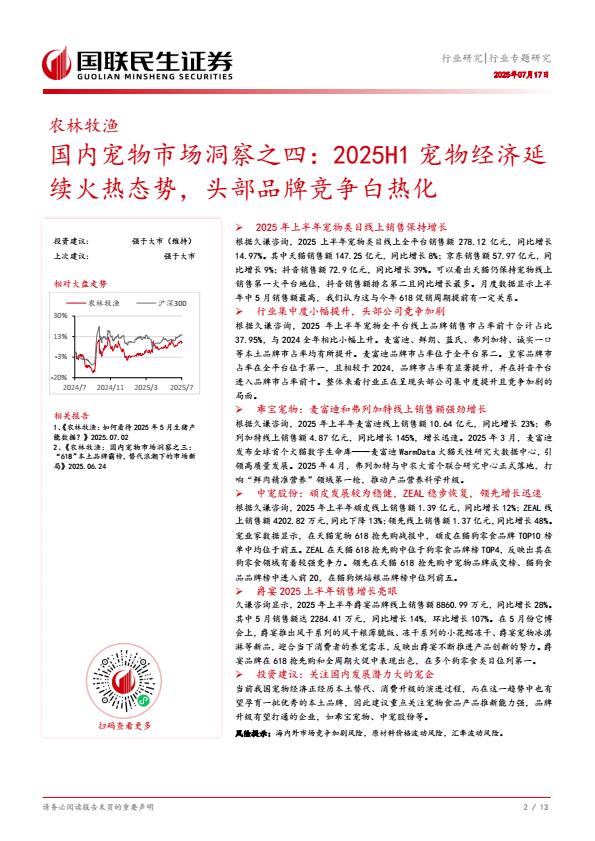 【18730】【国联民生证券】农林牧渔行业国内宠物市场洞察之四:2025H1宠物经济延续火热态势,头部品牌竞争白热化 1天前 7月 2 预览结束,本文件为PDF文档,一共14页,请购买后,下载查看 资源下载下载价格59 H币VIP免费升级VIP立即购买下载或充值问题请将订单号发送到:2907878669@qq.com ,我们会在24小时内为您处理 消费零售