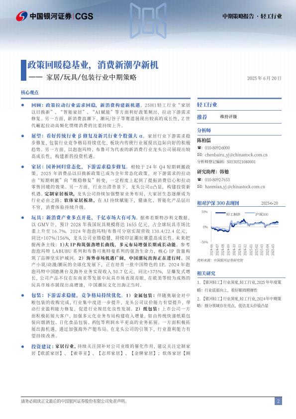 【18416】【银河证券】家居/玩具/包装行业中期策略:政策回暖稳基业,消费新潮孕新机 17小时前 7月 2 预览结束,本文件为PDF文档,一共40页,请购买后,下载查看 资源下载下载价格59 H币VIP免费升级VIP立即购买下载或充值问题请将订单号发送到:2907878669@qq.com ,我们会在24小时内为您处理 工业机械