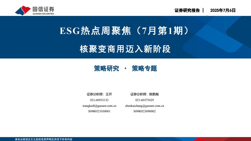 【18690】【国信证券】ESG热点周聚焦(7月第1期):核聚变商用迈入新阶段 1天前 7月 2 预览结束,本文件为PDF文档,一共23页,请购买后,下载查看 资源下载下载价格59 H币VIP免费升级VIP立即购买下载或充值问题请将订单号发送到:2907878669@qq.com ,我们会在24小时内为您处理 能源化工