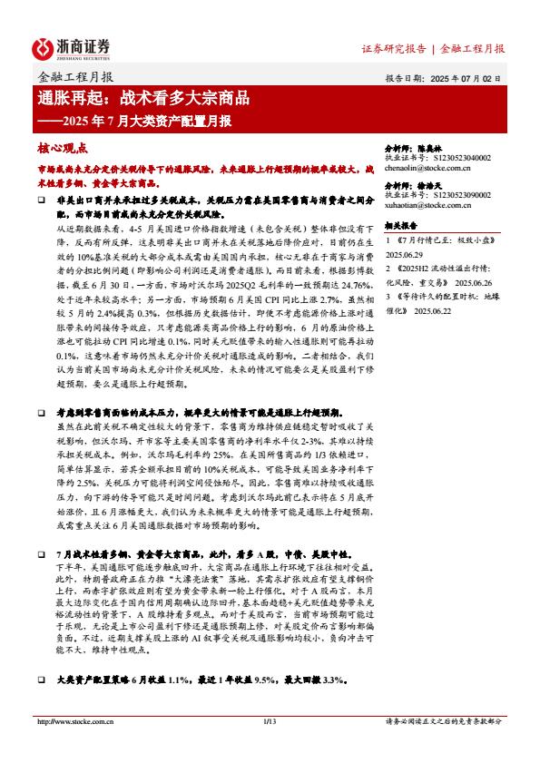 【18378】【浙商证券】2025年7月大类资产配置月报:通胀再起,战术看多大宗商品 17小时前 7月 1 预览结束,本文件为PDF文档,一共13页,请购买后,下载查看 资源下载下载价格59 H币VIP免费升级VIP立即购买下载或充值问题请将订单号发送到:2907878669@qq.com ,我们会在24小时内为您处理 大宗商品