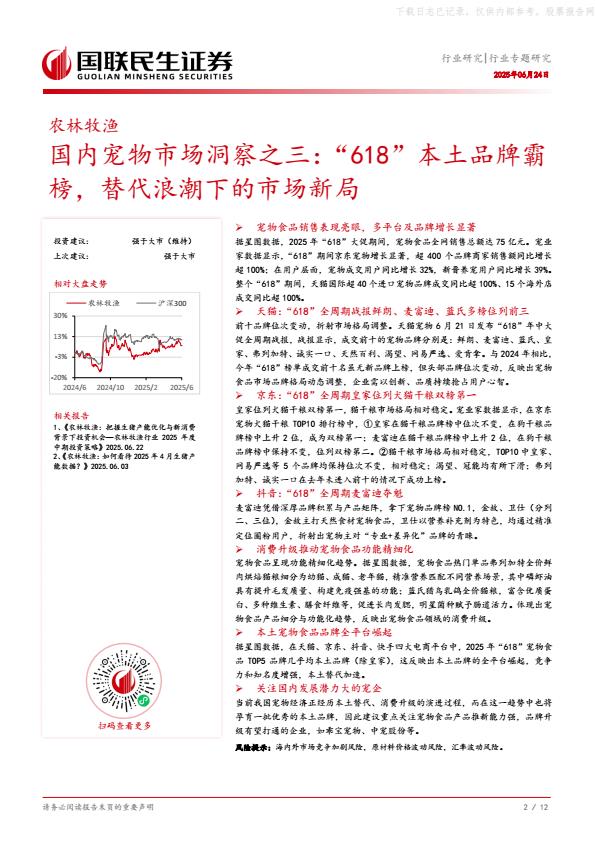 【18731】【国联民生证券】农林牧渔行业国内宠物市场洞察之三:“618”本土品牌霸榜,替代浪潮下的市场新局 19小时前 7月 1 预览结束,本文件为PDF文档,一共13页,请购买后,下载查看 资源下载下载价格59 H币VIP免费升级VIP立即购买下载或充值问题请将订单号发送到:2907878669@qq.com ,我们会在24小时内为您处理 消费零售