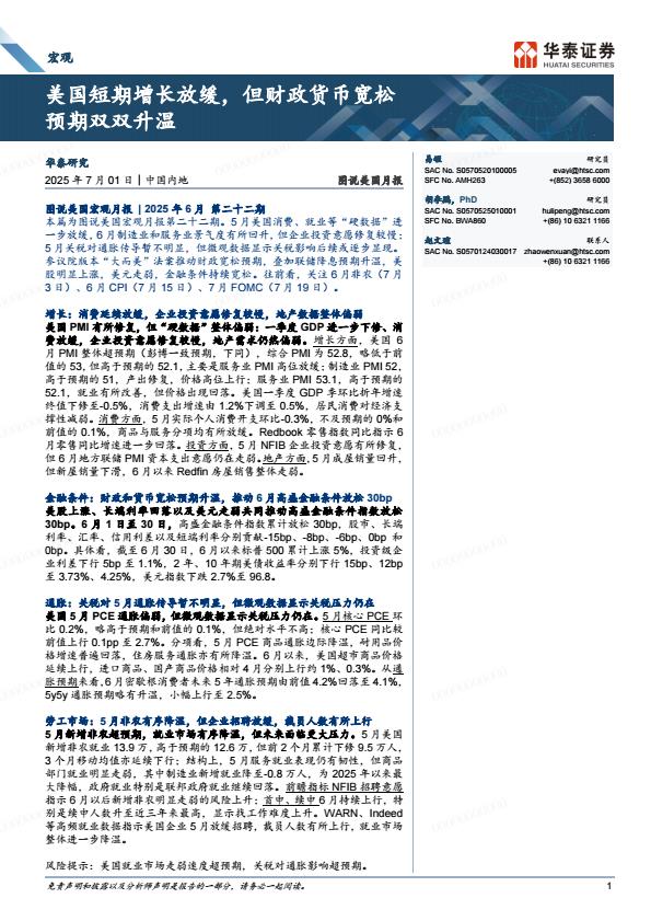 【18579】【华泰证券】图说美国月报:美国短期增长放缓,但财政货币宽松预期双双升温 1天前 7月 1 预览结束,本文件为PDF文档,一共17页,请购买后,下载查看 资源下载下载价格59 H币VIP免费升级VIP立即购买下载或充值问题请将订单号发送到:2907878669@qq.com ,我们会在24小时内为您处理 金融分析