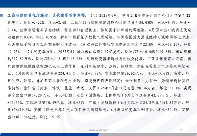 【18408】【长城证券】电力设备及新能源行业:光伏电池组件逆变器出口月报(25年6月) 2天前 7月 4 预览结束,本文件为PDF文档,一共17页,请购买后,下载查看 资源下载下载价格59 H币VIP免费升级VIP立即购买下载或充值问题请将订单号发送到:2907878669@qq.com ,我们会在24小时内为您处理 能源化工