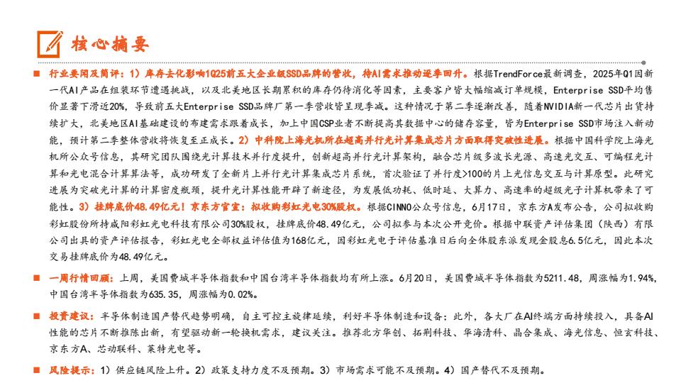 【18497】【平安证券】电子行业:1Q25企业级SSD品牌营收季减,上海光机所超高并行光计算集成芯片取得突破性进展 20小时前 7月 1 预览结束,本文件为PDF文档,一共12页,请购买后,下载查看 资源下载下载价格59 H币VIP免费升级VIP立即购买下载或充值问题请将订单号发送到:2907878669@qq.com ,我们会在24小时内为您处理 科技电子