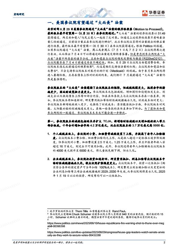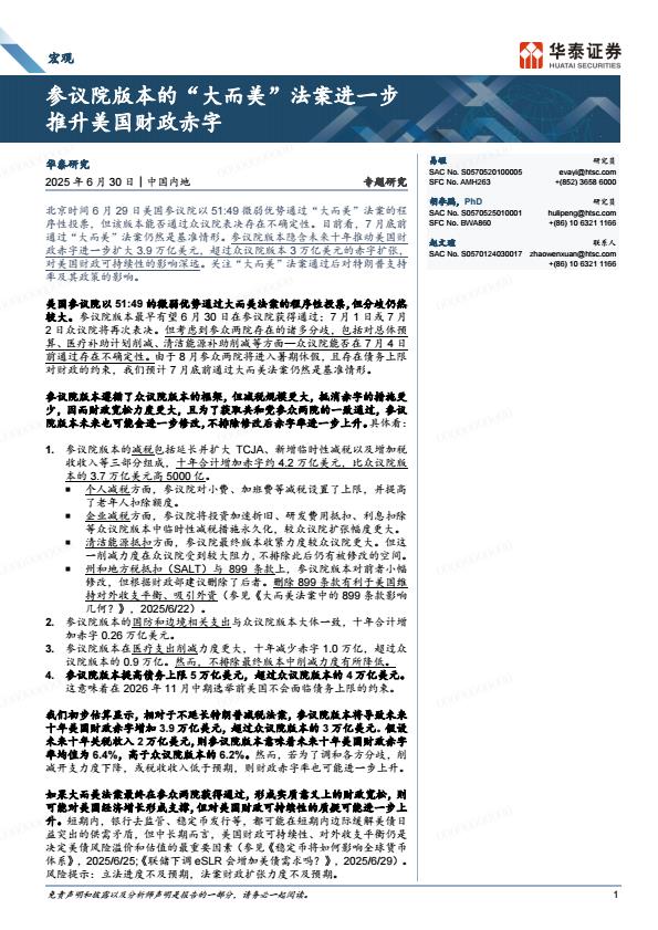 【18586】【华泰证券】宏观专题研究:参议院版本的“大而美”法案进一步推升美国财政赤字 1天前 7月 2 预览结束,本文件为PDF文档,一共10页,请购买后,下载查看 资源下载下载价格59 H币VIP免费升级VIP立即购买下载或充值问题请将订单号发送到:2907878669@qq.com ,我们会在24小时内为您处理 金融分析