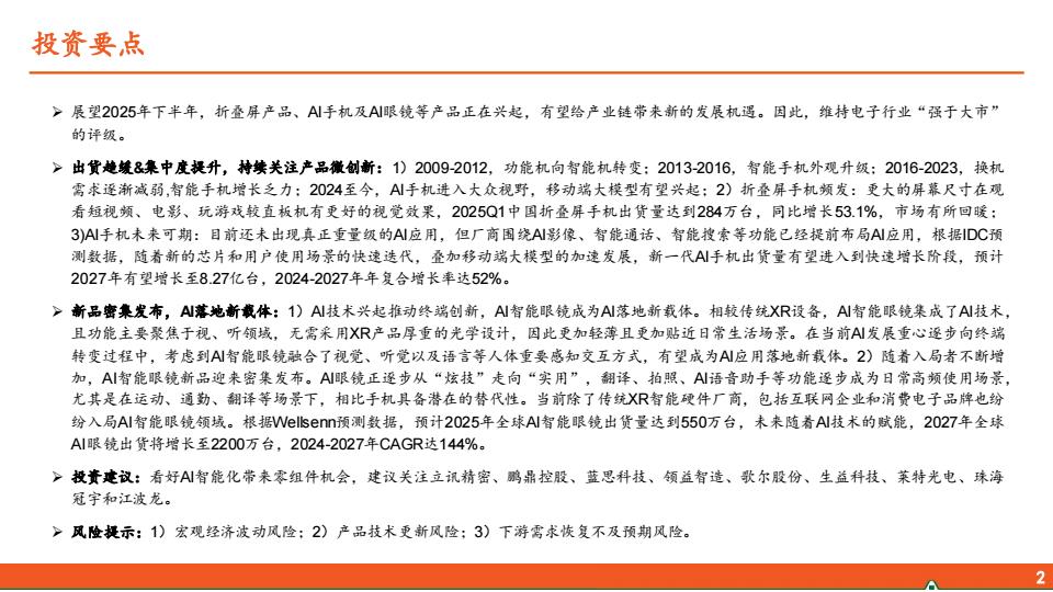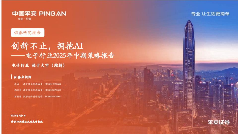 【18498】【平安证券】电子行业2025年中期策略报告:创新不止,拥抱AI 1天前 7月 1 预览结束,本文件为PDF文档,一共37页,请购买后,下载查看 资源下载下载价格59 H币VIP免费升级VIP立即购买下载或充值问题请将订单号发送到:2907878669@qq.com ,我们会在24小时内为您处理 科技电子
