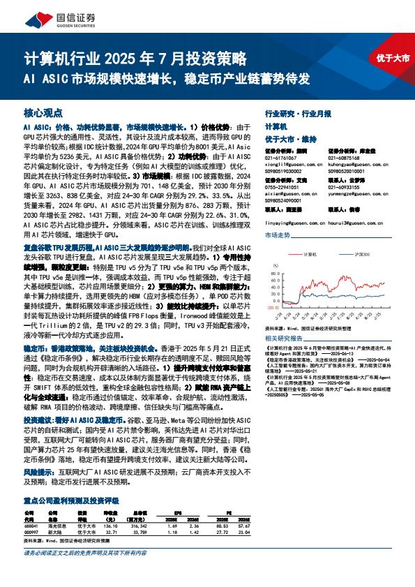 【18671】【国信证券】计算机行业2025年7月投资策略:AI+ASIC市场规模快速增长,稳定币产业链蓄势待发 1天前 7月 1 预览结束,本文件为PDF文档,一共22页,请购买后,下载查看 资源下载下载价格59 H币VIP免费升级VIP立即购买下载或充值问题请将订单号发送到:2907878669@qq.com ,我们会在24小时内为您处理 科技电子