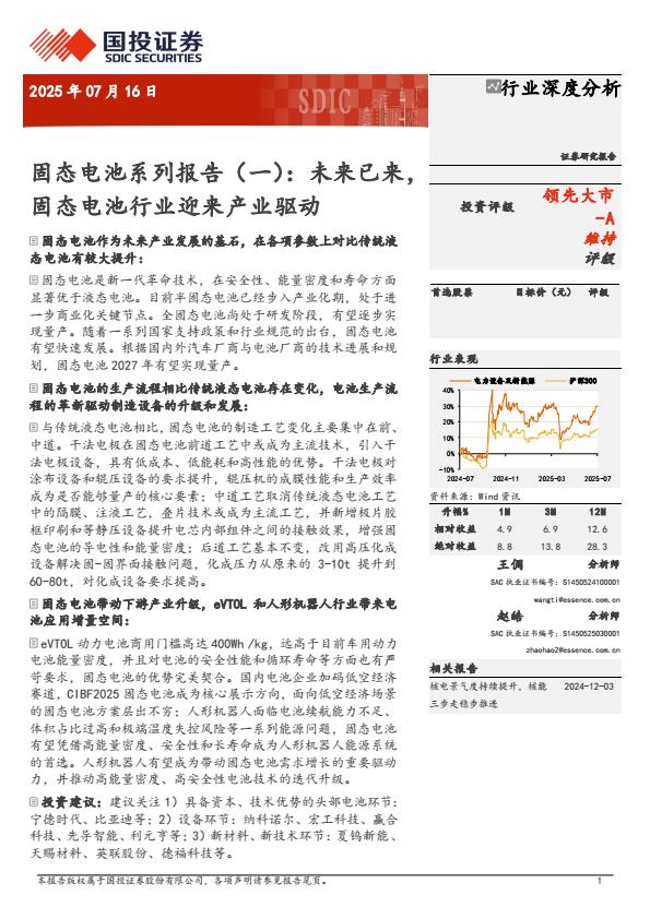 【18700】【国投证券】固态电池系列报告(一):未来已来,固态电池行业迎来产业驱动 1天前 7月 2 预览结束,本文件为PDF文档,一共30页,请购买后,下载查看 资源下载下载价格59 H币VIP免费升级VIP立即购买下载或充值问题请将订单号发送到:2907878669@qq.com ,我们会在24小时内为您处理 能源化工
