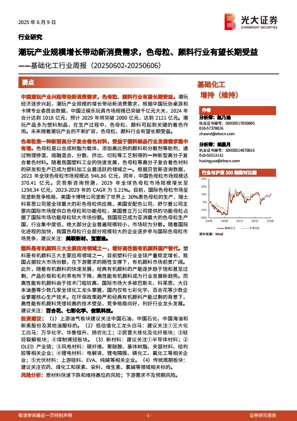 【18802】【光大证券】基础化工行业周报:潮玩产业规模增长带动新消费需求,色母粒、颜料行业有望长期受益 1天前 7月 2 预览结束,本文件为PDF文档,一共27页,请购买后,下载查看 资源下载下载价格59 H币VIP免费升级VIP立即购买下载或充值问题请将订单号发送到:2907878669@qq.com ,我们会在24小时内为您处理 消费零售