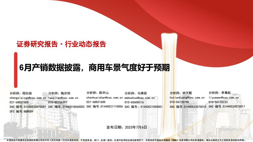 【18266】【中信建投】汽车行业:6月产销数据披露,商用车景气度好于预期 20小时前 7月 1 预览结束,本文件为PDF文档,一共29页,请购买后,下载查看 资源下载下载价格59 H币VIP免费升级VIP立即购买下载或充值问题请将订单号发送到:2907878669@qq.com ,我们会在24小时内为您处理 汽车物流