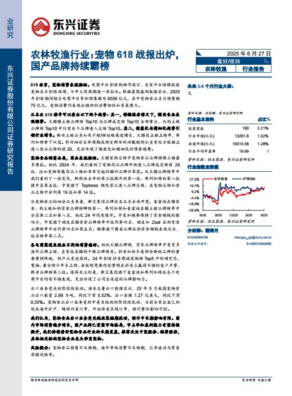 【18810】【东兴证券】农林牧渔行业报告:宠物618战报出炉,国产品牌持续霸榜 1天前 7月 1 预览结束,本文件为PDF文档,一共10页,请购买后,下载查看 资源下载下载价格59 H币VIP免费升级VIP立即购买下载或充值问题请将订单号发送到:2907878669@qq.com ,我们会在24小时内为您处理 消费零售