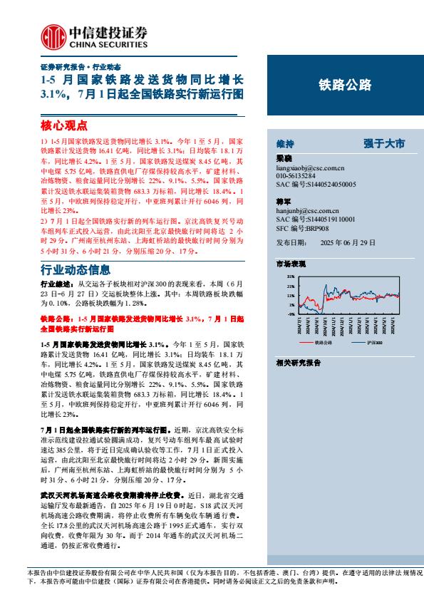 【18243】【中信建投】铁路公路行业动态:1 17小时前 7月 2 预览结束,本文件为PDF文档,一共11页,请购买后,下载查看 资源下载下载价格59 H币VIP免费升级VIP立即购买下载或充值问题请将订单号发送到:2907878669@qq.com ,我们会在24小时内为您处理 交通基建