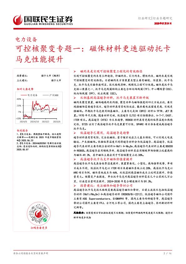 【18736】【国联民生证券】电力设备行业可控核聚变专题一:磁体材料更迭驱动托卡马克性能提升 1天前 7月 1 预览结束,本文件为PDF文档,一共17页,请购买后,下载查看 资源下载下载价格59 H币VIP免费升级VIP立即购买下载或充值问题请将订单号发送到:2907878669@qq.com ,我们会在24小时内为您处理 能源化工