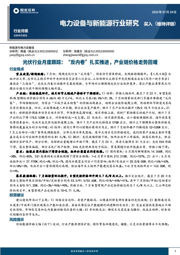 【18750】【国金证券】光伏行业7月月度跟踪:“反内卷”扎实推进,产业链价格走势回暖 19小时前 7月 1 预览结束,本文件为PDF文档,一共20页,请购买后,下载查看 资源下载下载价格59 H币VIP免费升级VIP立即购买下载或充值问题请将订单号发送到:2907878669@qq.com ,我们会在24小时内为您处理 能源化工