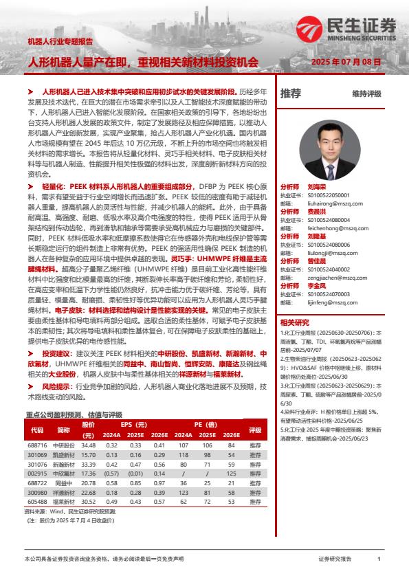 【18511】【民生证券】机器人行业专题报告:人形机器人量产在即,重视相关新材料投资机会 16小时前 7月 1 预览结束,本文件为PDF文档,一共57页,请购买后,下载查看 资源下载下载价格59 H币VIP免费升级VIP立即购买下载或充值问题请将订单号发送到:2907878669@qq.com ,我们会在24小时内为您处理 科技电子