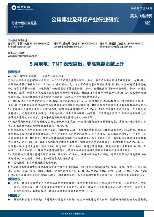 【18751】【国金证券】公用事业及环保产业行业专题研究报告:5月用电,TMT表现突出,非高耗能贡献上升 20小时前 7月 1 预览结束,本文件为PDF文档,一共16页,请购买后,下载查看 资源下载下载价格59 H币VIP免费升级VIP立即购买下载或充值问题请将订单号发送到:2907878669@qq.com ,我们会在24小时内为您处理 能源化工