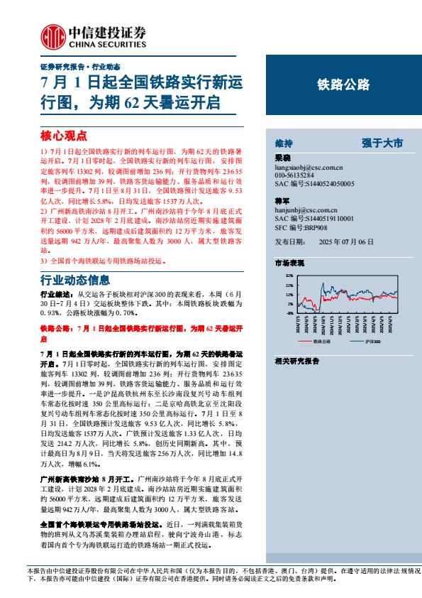 【18244】【中信建投】铁路公路行业:7月1日起全国铁路实行新运行图,为期62天暑运开启 17小时前 7月 1 预览结束,本文件为PDF文档,一共11页,请购买后,下载查看 资源下载下载价格59 H币VIP免费升级VIP立即购买下载或充值问题请将订单号发送到:2907878669@qq.com ,我们会在24小时内为您处理 交通基建