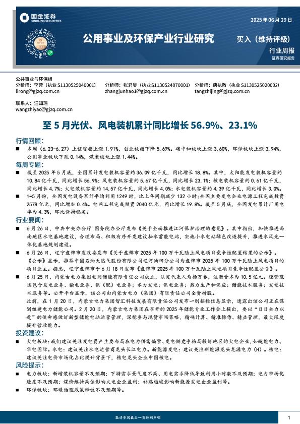 【18752】【国金证券】公用事业及环保产业行业研究:至5月光伏、风电装机累计同比增长56.9 2天前 7月 2 预览结束,本文件为PDF文档,一共17页,请购买后,下载查看 资源下载下载价格59 H币VIP免费升级VIP立即购买下载或充值问题请将订单号发送到:2907878669@qq.com ,我们会在24小时内为您处理 能源化工