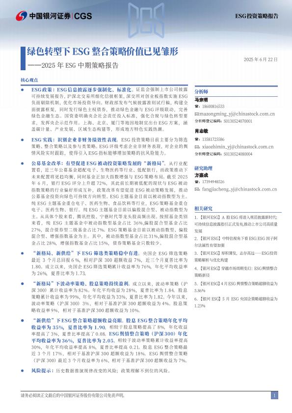 【18420】【银河证券】2025年ESG中期策略报告:绿色转型下ESG整合策略价值已见雏形 2天前 7月 2 预览结束,本文件为PDF文档,一共27页,请购买后,下载查看 资源下载下载价格59 H币VIP免费升级VIP立即购买下载或充值问题请将订单号发送到:2907878669@qq.com ,我们会在24小时内为您处理 能源化工