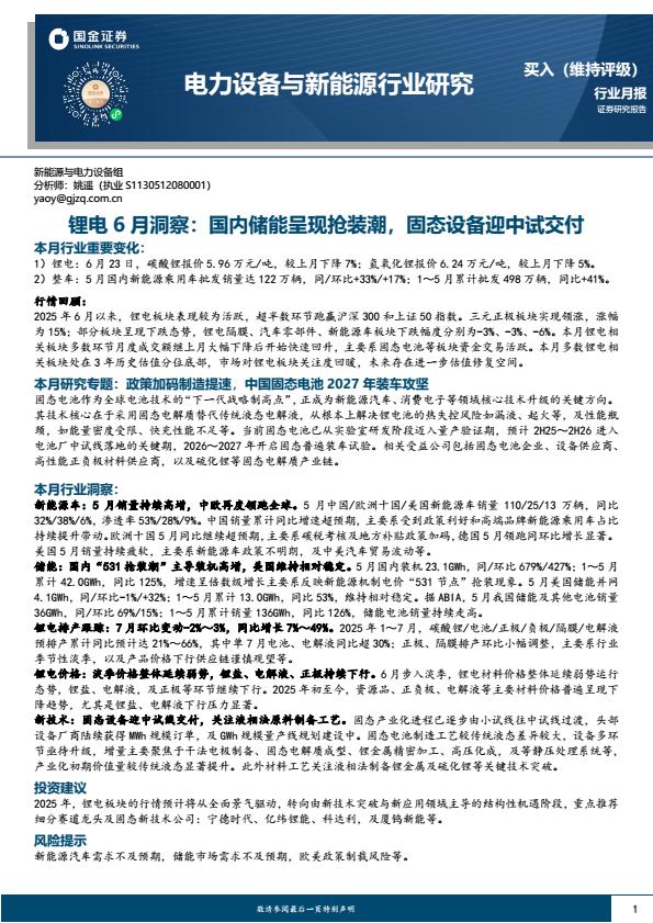 【18762】【国金证券】电力设备与新能源行业锂电6月洞察:国内储能呈现抢装潮,固态设备迎中试交付 2天前 7月 1 预览结束,本文件为PDF文档,一共17页,请购买后,下载查看 资源下载下载价格59 H币VIP免费升级VIP立即购买下载或充值问题请将订单号发送到:2907878669@qq.com ,我们会在24小时内为您处理 能源化工